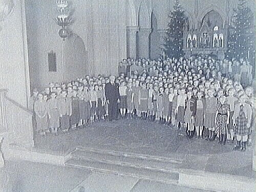 Örebro Folkskolors Barnkör under ledning av sånglärare Folke Olsson.