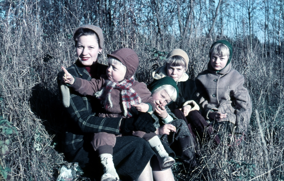Familjen Knut Borg, på väg till tornet (Oset), 23 oktober 1955.