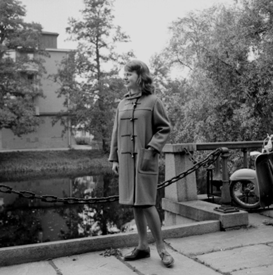 En kvinna. Kläderna från Konsum Damkonfektion.