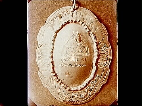 Namnplåt i silver som sitter runt Snickargesällernas välkomma, med texten: Olaus Sederström.
