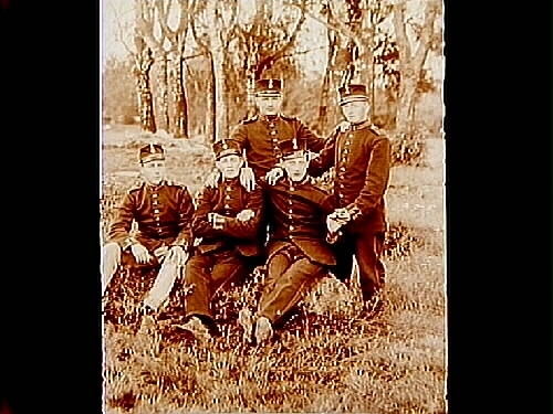 Fem soldater ute i fält.