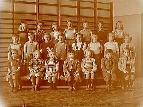 Engelbrektsskolan, klassrumsinteriör, 25 skolbarn med lärarinna fröken Herta Elander, klass 2ae, sal 5.
