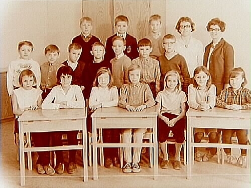 17 skolbarn och lärarinna fru Marianne Christensson och fru Ulla Andersson.