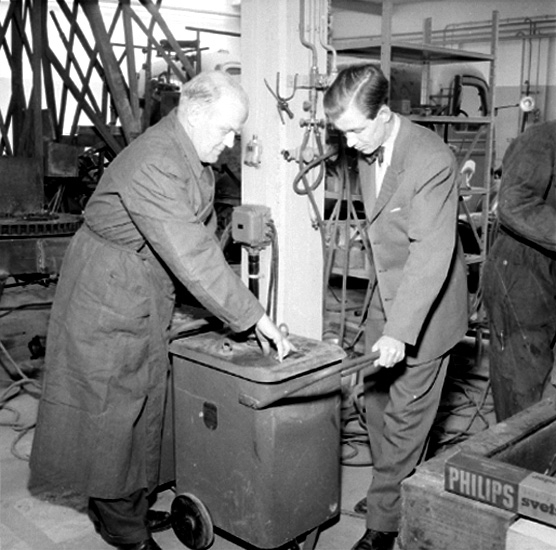 Philips Svenska AB, verkstadsinteriör med arbetare.