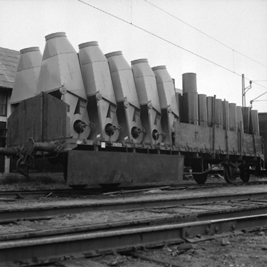 Titel: Lastning av Säffle-fläktar på tåget. Nils Johansson