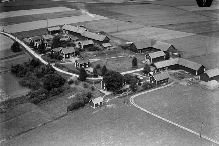 Flygfoto över Åkerby, bostadshus och byggnader.
