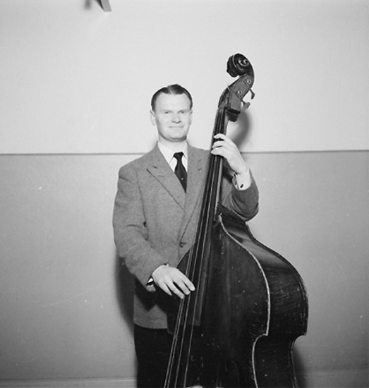Whispering Band på Teknis, en man med musikinstrument (bas).