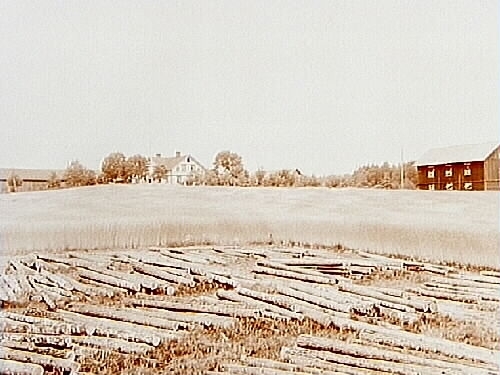En och en halvvånings bostadshus med frontespis och veranda. Ekonomibyggnader.