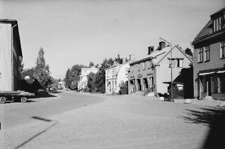 Fjugesta, gatuparti, bostadshus och affärsbyggnader.