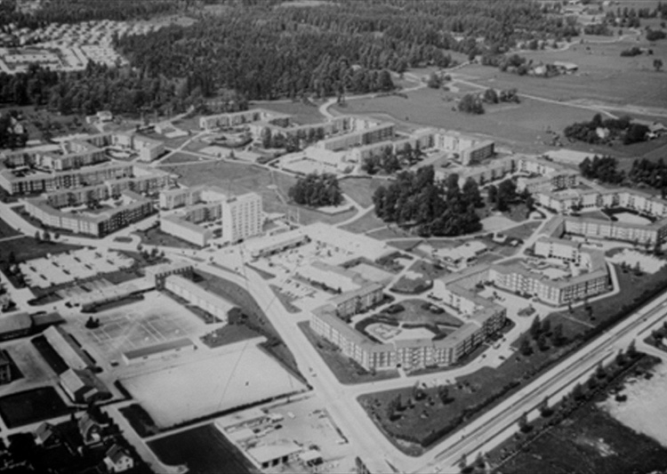Flygfoto över Baronbackarna, Örebro.