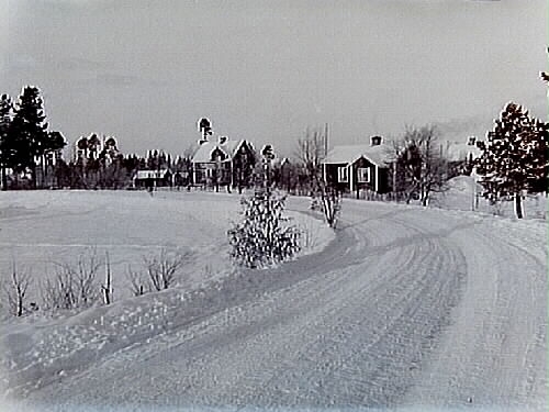 Tre hus vid vägen, det första envånings bostadshus, det andra och tredje en och en halv vånings bostadshus.
