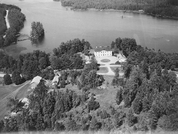 Flygfoto över herrgårdspensionatet, Svartå.