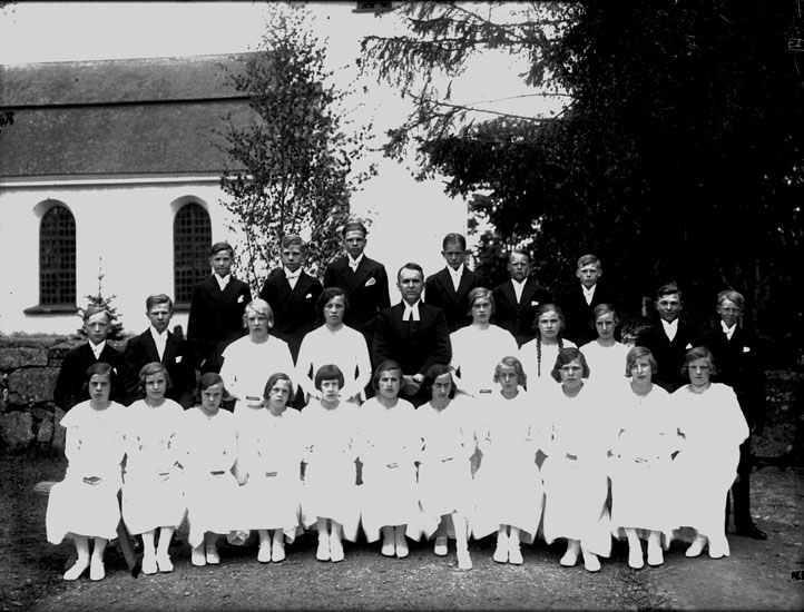 Konfirmander, 16 flickor, 10 pojkar och kyrkoherde Areborg.