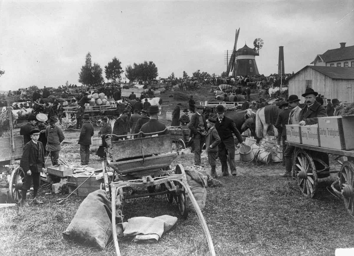 Odensbackens Marknad, kreaturshandel och marknadsstånd.
