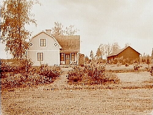 En och en halvvånings bostadshus, vinkelbyggt, med brutet tak. Ekonomibyggnad.