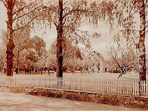 Hjärsta gård, gården från gaveln med tre björkar.