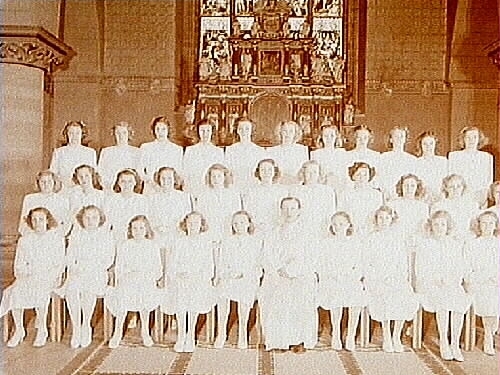 31 konfirmander, 31 flickor och pastor L. E. Westerström.