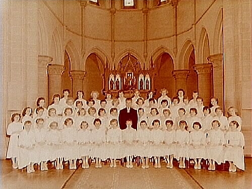 Konfirmander, 56 flickor och pastor Inge Lagerstedt.
