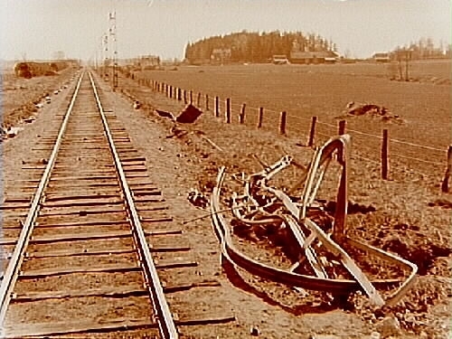 Olycka vid spåret, nedkörd luftledning.