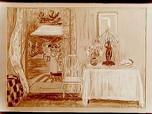 Oljemålning. Motiv: Rumsinteriör, av konstnären G. Börje.