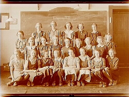 Olaus Petriskolan, klassrumsinteriör, 21 flickor med lärarinna fru Brita Reiland, sal 11.