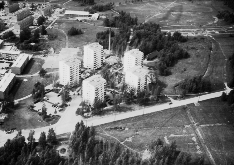 Flygfoto över Höghusen, Norrbyområdet, Örebro.