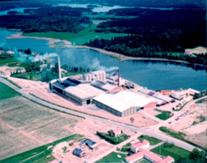 Flygfoto över Hammars Glasbruk, fabriksbyggnader.