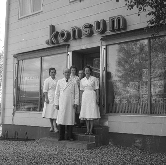 Konsum, exteriör. Personalen, fem personer.