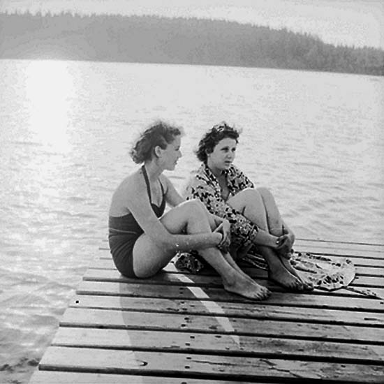 Badplats i Ställdalen, två kvinnor på bryggan.