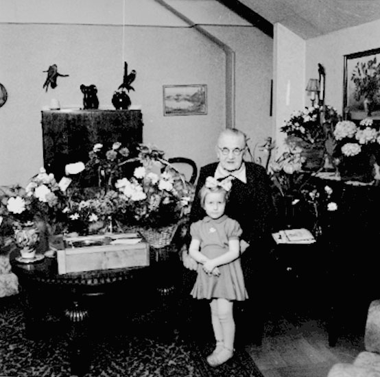 Rumsinteriör, en äldre kvinna och en liten flicka.