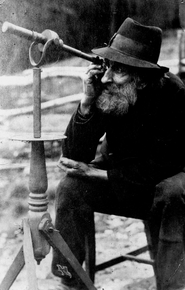 August Mattsson tittar i sin tubkikare.