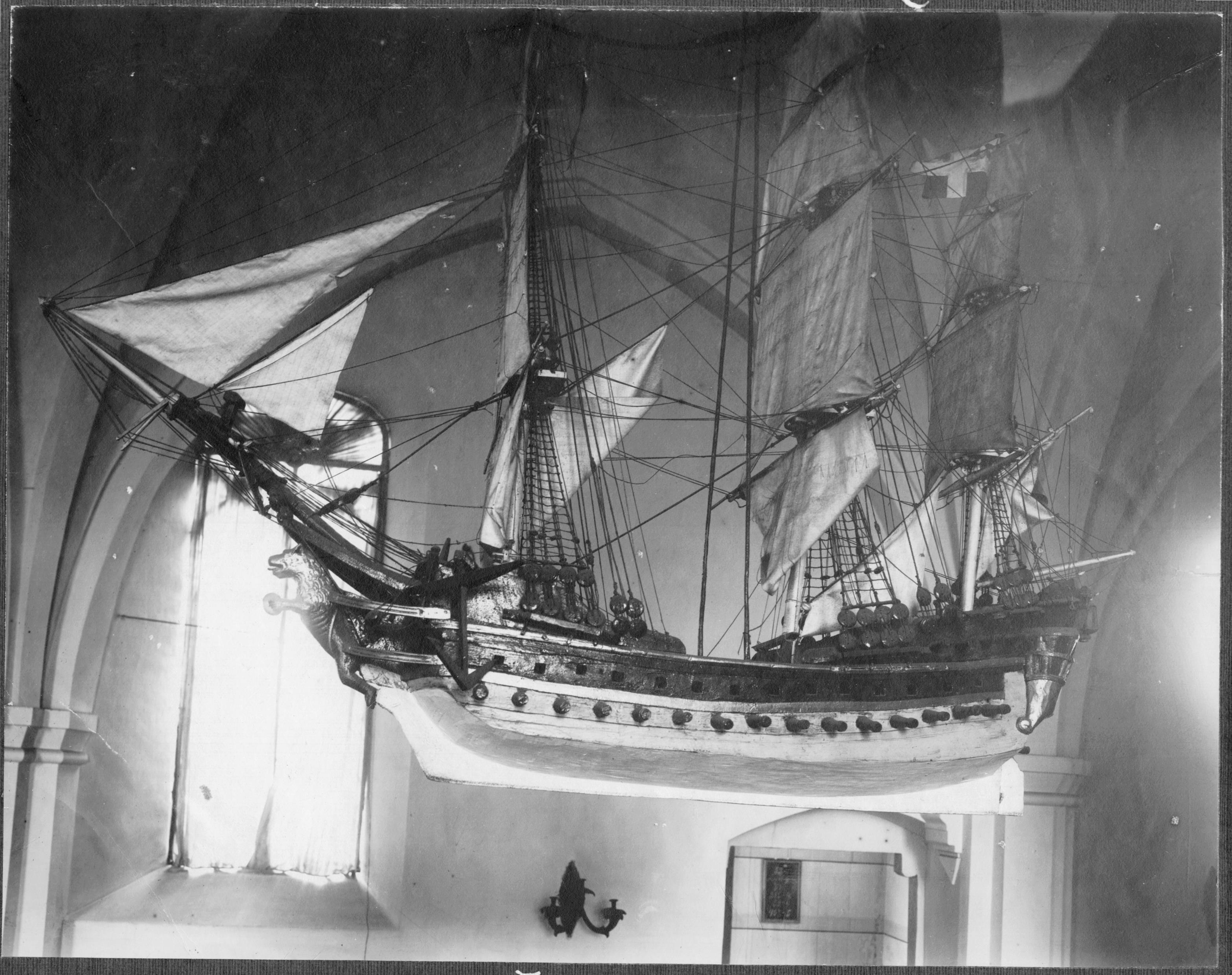 Votivskepp. Uppsatt 1776 restaurerat 1879. Fiskare och skeppare skänkte skeppet.