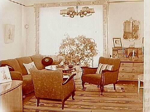 Rumsinteriör, vardagsrum hos fru Hedin.