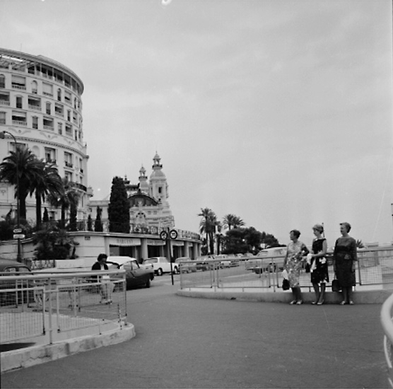 Tre kvinnor. Byggnader.