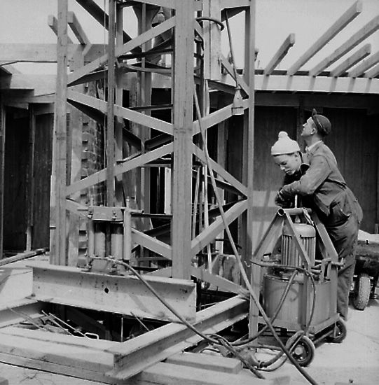 Titel: Byggnadsarbete, två män. Örebro söder.