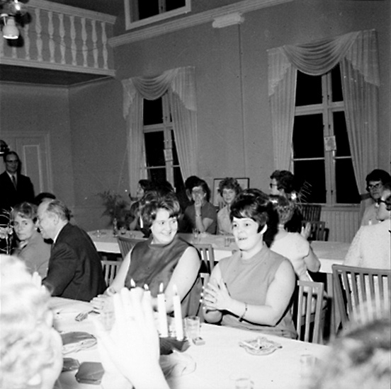 Titel: Interiör, grupp vid bordet. Kexens Konstklubb. Örebro Kexfabrik