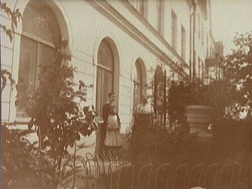Fru Larsson och Jenny utanför Trädgårdsg. 19