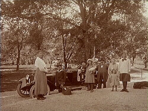 Bilen som skymtar på bilden är en Dodge från cirka 1920.