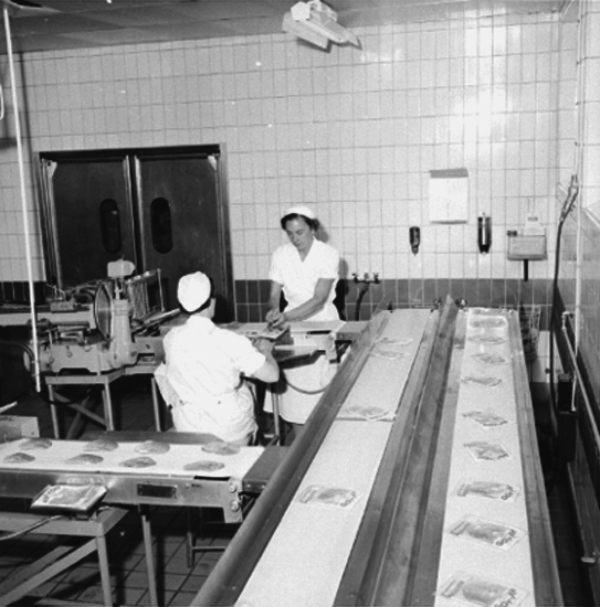 Konsum, charkuteriavdelningen, interiör, två kvinnor.