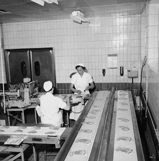Konsum, charkuteriavdelningen, interiör, två kvinnor.