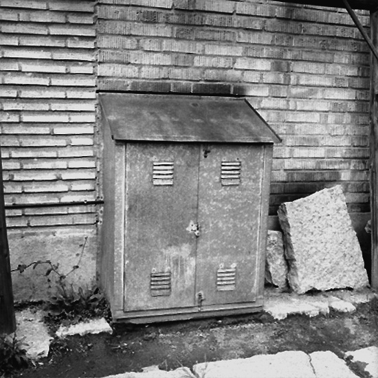 Titel: Kvarntorps Gasol, byggnaden, skåp för gasolflaskor. Skifferolje AB.