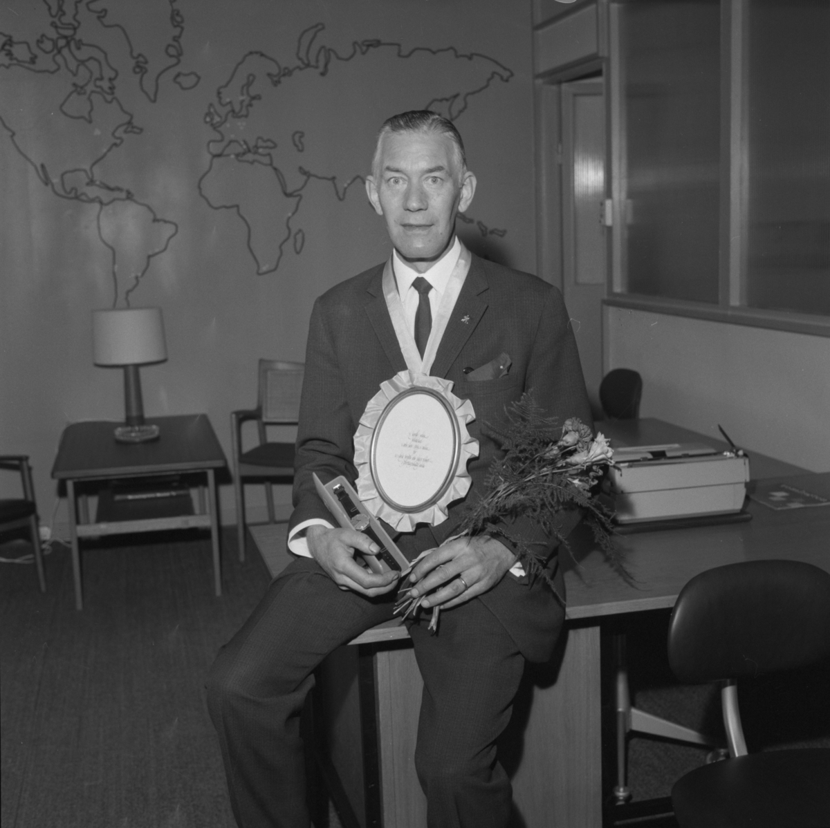 Wigrell & Co, kontorsinteriör, en man. Prisutdelning.