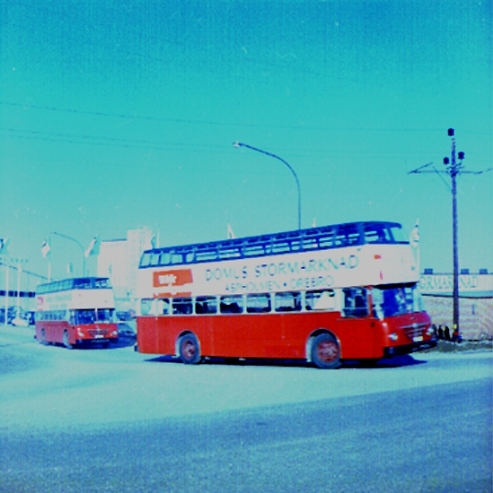 Titel: Konsums Domus stormarknad, bilparaden, bussar.