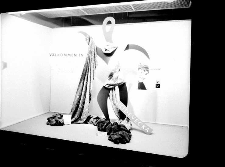 Håkansons, skyltfönster med tyger, "Mölnlycke Modevecka".