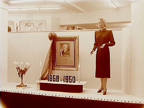 Marks varuhus, skyltfönster, Gustav V:s porträtt.