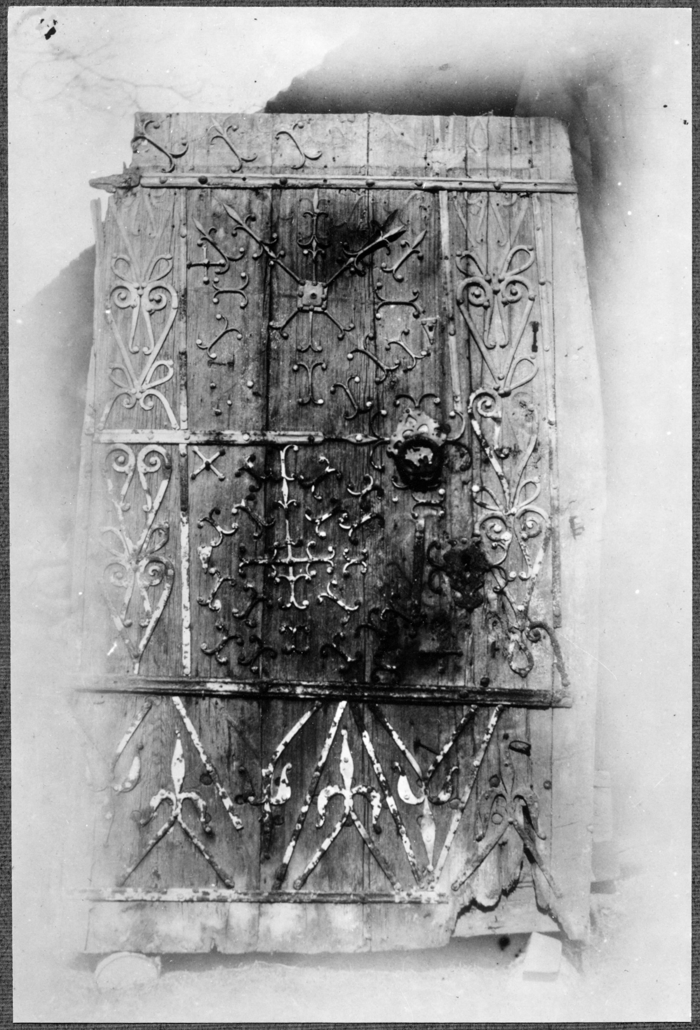 Medeltida dörr med järnbeslag. Kopia av bild 1931.