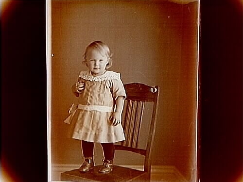 En liten flicka på en stol.