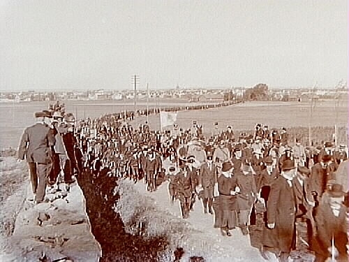 Titel: Rynninge. Regemente. Kungl. Livregementets grenadjärer. Grenadjärernas marsch till manövern.