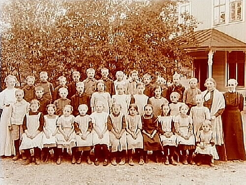 Glashyttans skola, 36 skolbarn med lärarinna fröken Lavinia Gunnarsson.