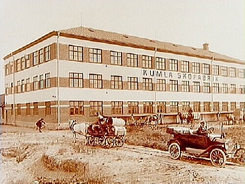 Kumla Skofabrik, trevånings fabriksbyggnad i tegel.